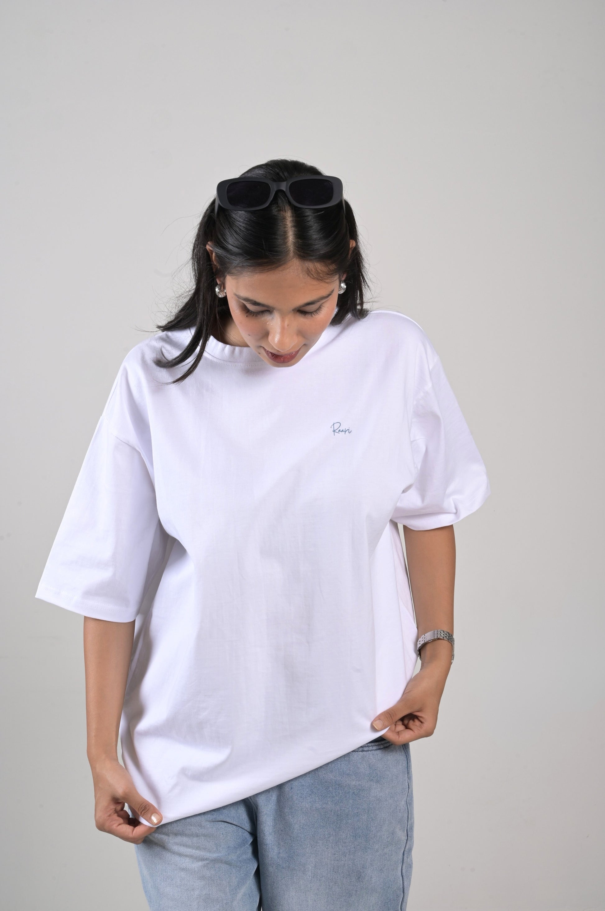 Oversized White Tee - Unisex Cotton Minimalist T-Shirt